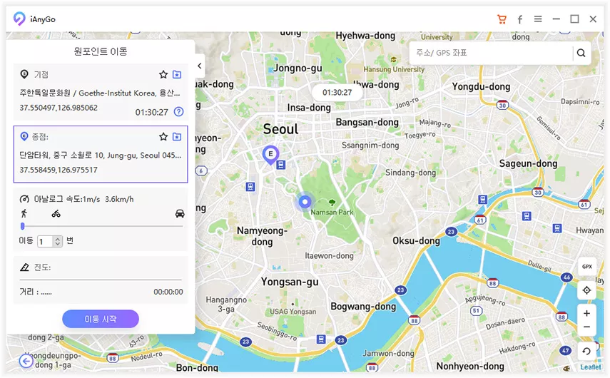 iAnyGo에서는 2지점 모드, 다지점 모드, 조이스틱 모드 등 다양한 GPS 시뮬레이션 모드를 제공합니다.